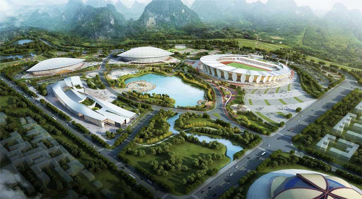 項目位于廣西壯族自治區(qū)靖西市,公園主要建設(shè)內(nèi)容有文化三館、健身館、游泳館、體育館等。博大此次中標的是文化三館和健身館幕墻工程。