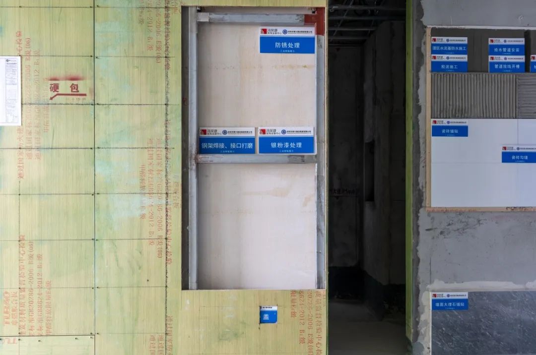 項目部除嚴格管控材料質(zhì)量外,也嚴格把控過程施工質(zhì)量,從基層彈線、龍骨排版、線管施工、艾特板安裝、夾板施工、防水施工等基層施工,每一道工序都嚴格按照標(biāo)準、技術(shù)要求、工法樣板進行施工。
