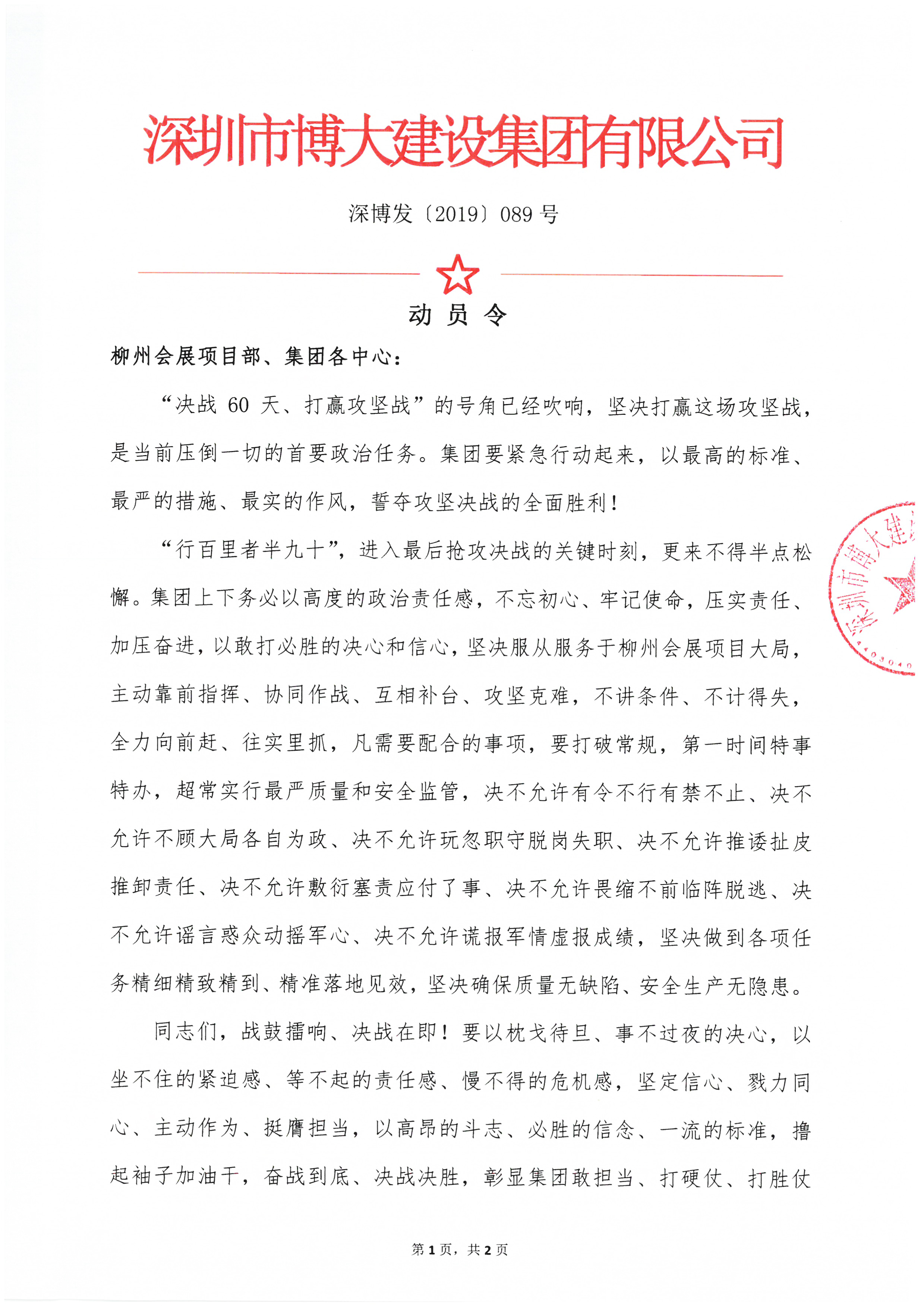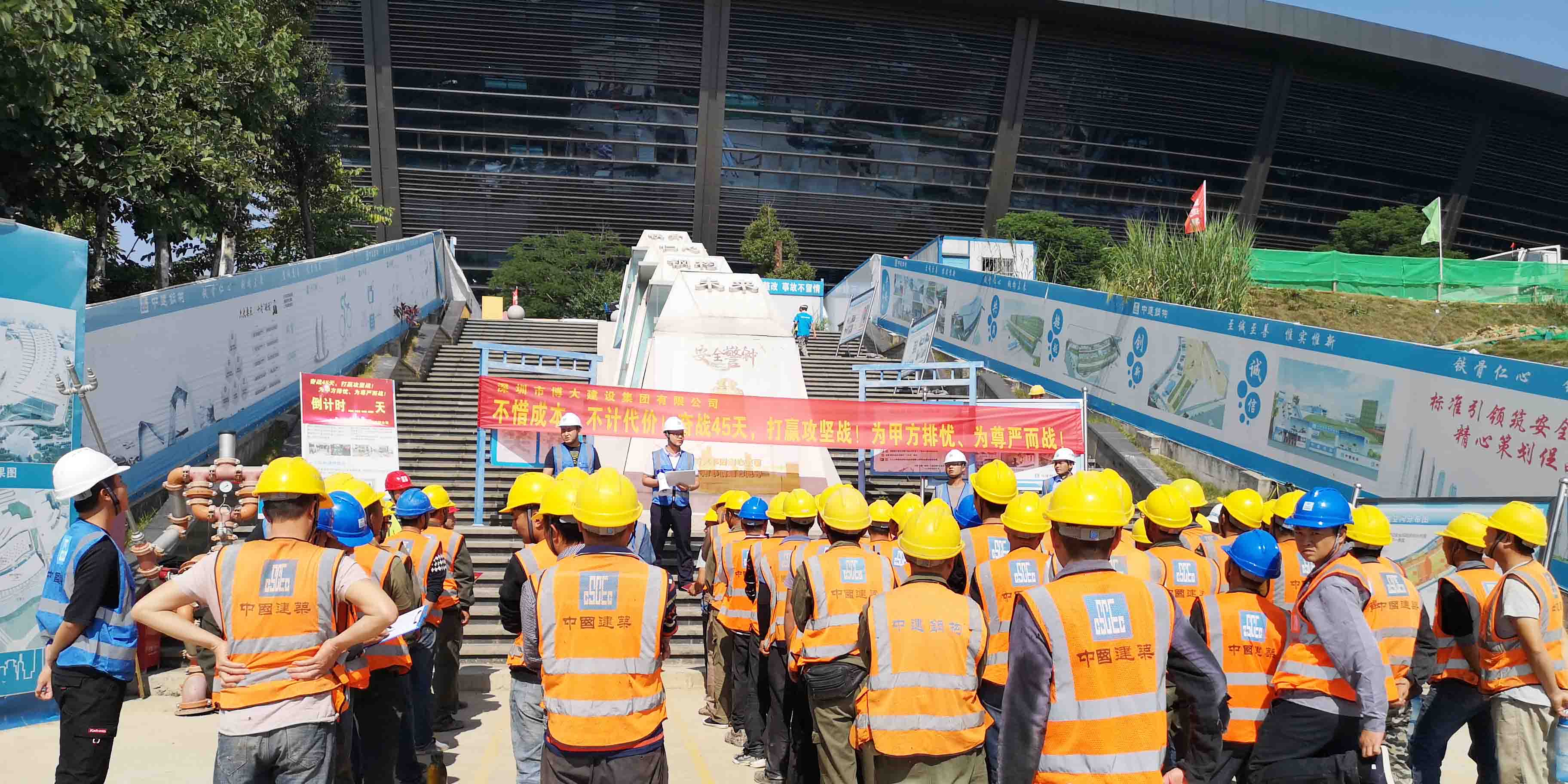 奮戰(zhàn)45天,博大鐵軍誓言打贏柳州會(huì)展項(xiàng)目攻堅(jiān)戰(zhàn)——中國-東盟(柳州)工業(yè)品展示交易中心項(xiàng)目部舉行攻堅(jiān)誓師大會(huì)