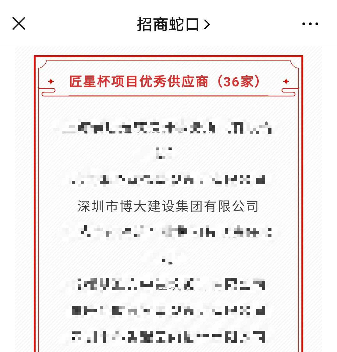 博大建設(shè)集團作為招商蛇口的長期合伙伙伴,繼獲得“2018年度優(yōu)秀新供應(yīng)商”后,再次榮獲“匠星杯項目優(yōu)秀供應(yīng)商”稱號。