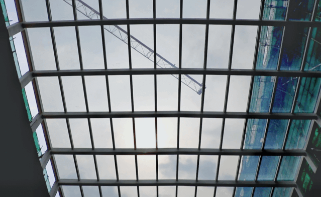 144塊玻璃、一塊400多斤,在接到甲方的施工要求后,博大僅用一天半的時間,便在高達(dá)15米的屋面完成調(diào)光玻璃幕墻的安裝。