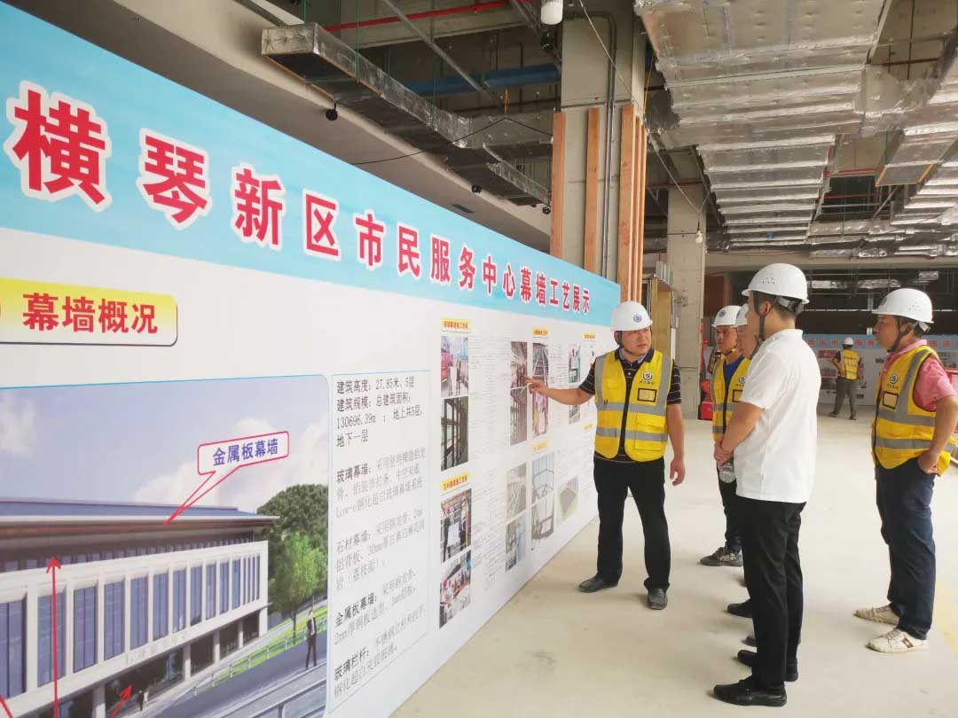 8月31日下午,中建三局南方區(qū)域組織旗下100余名管理人員前往珠海橫琴新區(qū)市民服務(wù)中心建設(shè)項目觀摩學(xué)習(xí),博大建設(shè)集團(tuán)作為幕墻方向的施工單位,詳細(xì)向觀摩團(tuán)展示博大幕墻的新科技、施工工藝工法和最終呈現(xiàn)效果。