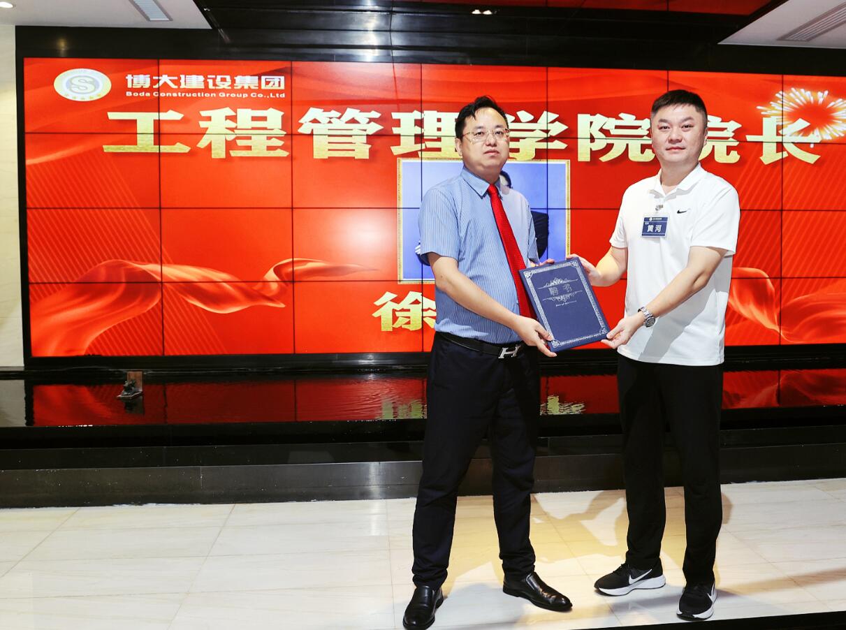 14日上午,培訓正式開始前,博大鐵軍大學隆重舉行工程管理學院、研發(fā)技術學院兩個院長的任命儀式。任命集團高級副總裁、裝飾機電中心總經(jīng)理徐朝華為工程管理學院院長,任命幕墻中心總工程師李立強為研發(fā)技術學院院長。