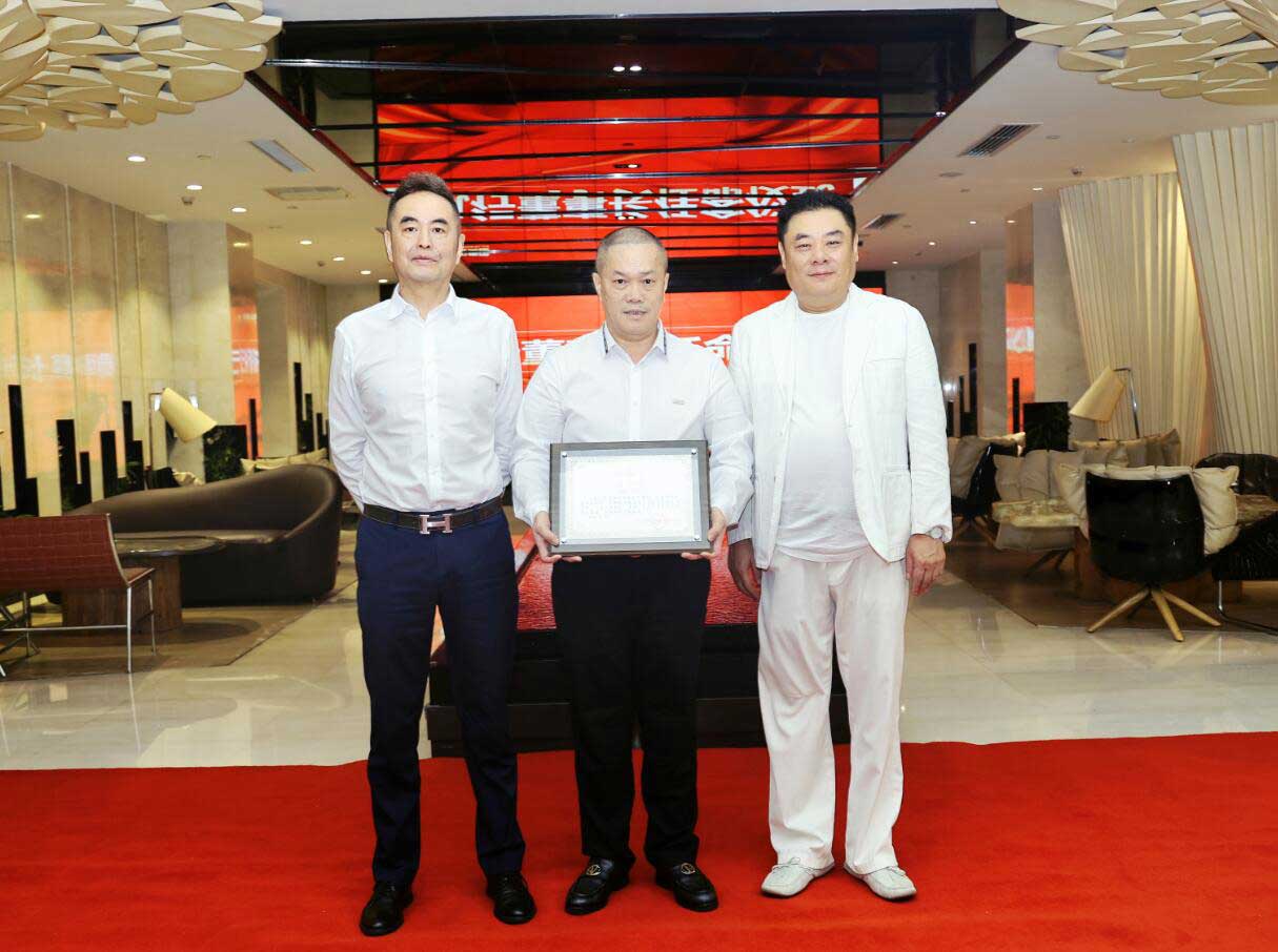 圖 | 創(chuàng)始人徐凱宏、董事長洪宇共同為張炳來先生頒發(fā)集團(tuán)董事、執(zhí)行董事長任命書