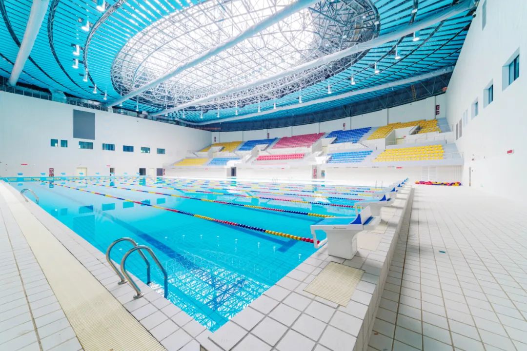 博大負責的施工區(qū)域涵蓋體育館、運動場、游泳館、人防地下室,聲學吸音等全部裝飾工程。其中運動場東、西看臺兩側均為弧形造型,現(xiàn)場工期緊、任務重,交叉作業(yè)多,協(xié)調(diào)難度大,配合要求高。