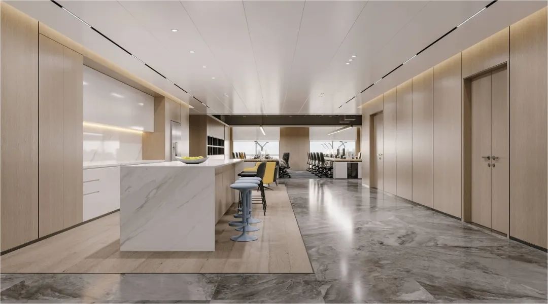 該辦公樓是集辦公,信息化,員工配套,培訓(xùn)會議,企業(yè)展廳為一體的綜合性辦公樓,包含2棟建筑,總面積約4.8萬㎡。其中:1號樓地上建筑面積1.8萬㎡,2號樓地上建筑面積2.8萬㎡,博物館建筑面積2000㎡。博大的施工范圍涵蓋一層接待大堂;二三層信息化機房與系統(tǒng)運維;四五層職工餐廳;六至十二層科技辦公樓層;十三至十四層為企業(yè)特色辦公樓層;十五層培訓(xùn)會議樓層;十六層文化活動中心,局部區(qū)域挑空作為羽毛球場地;十七層信合史館等在內(nèi)的全部施工區(qū)域。