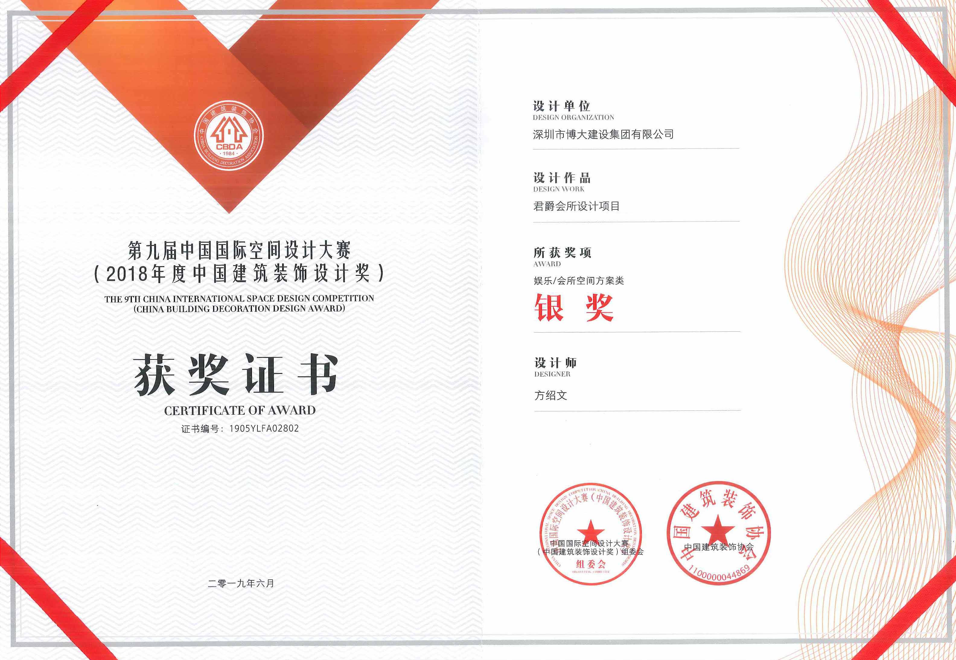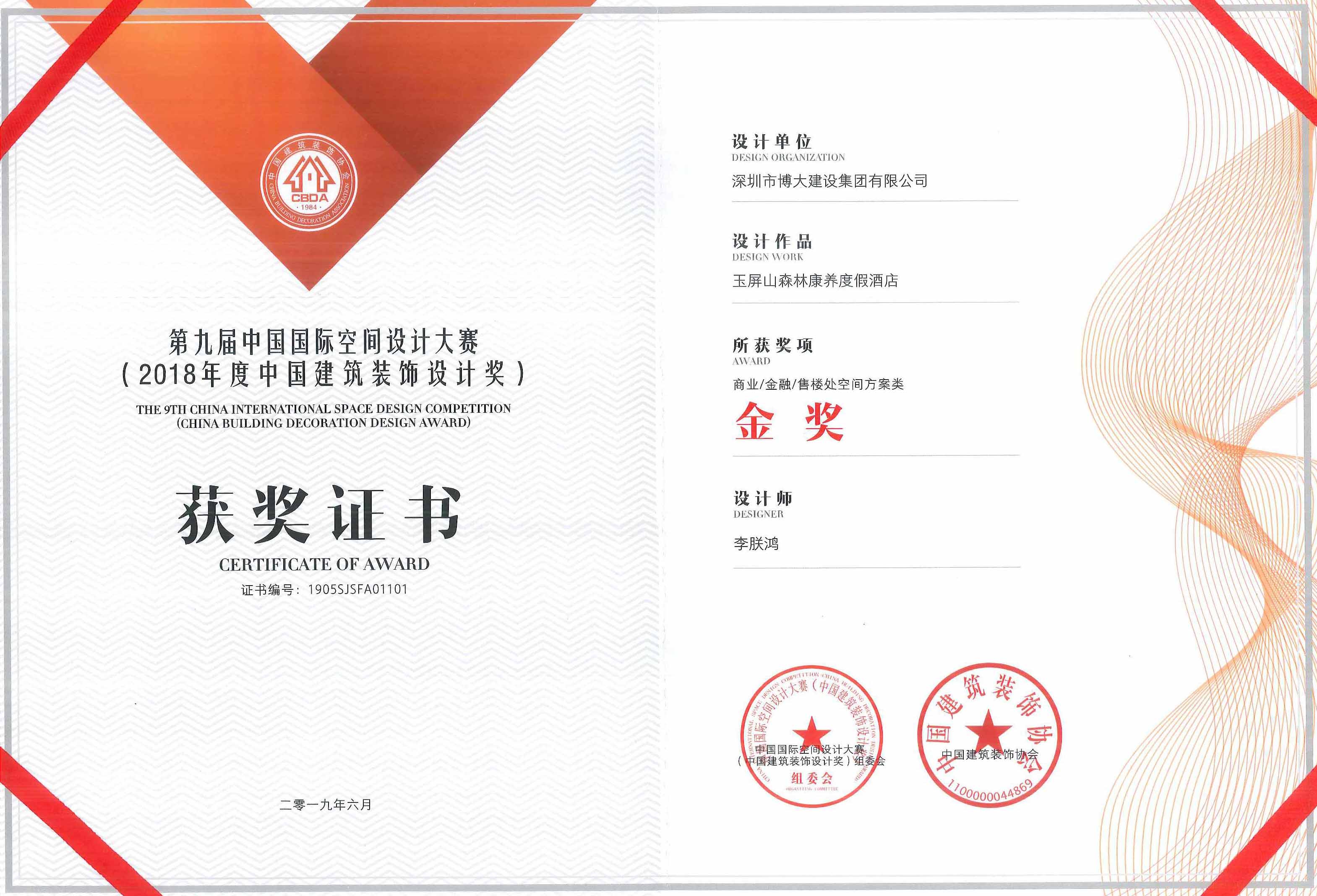 2021年度中國建筑裝飾行業(yè)百強設計類第五名