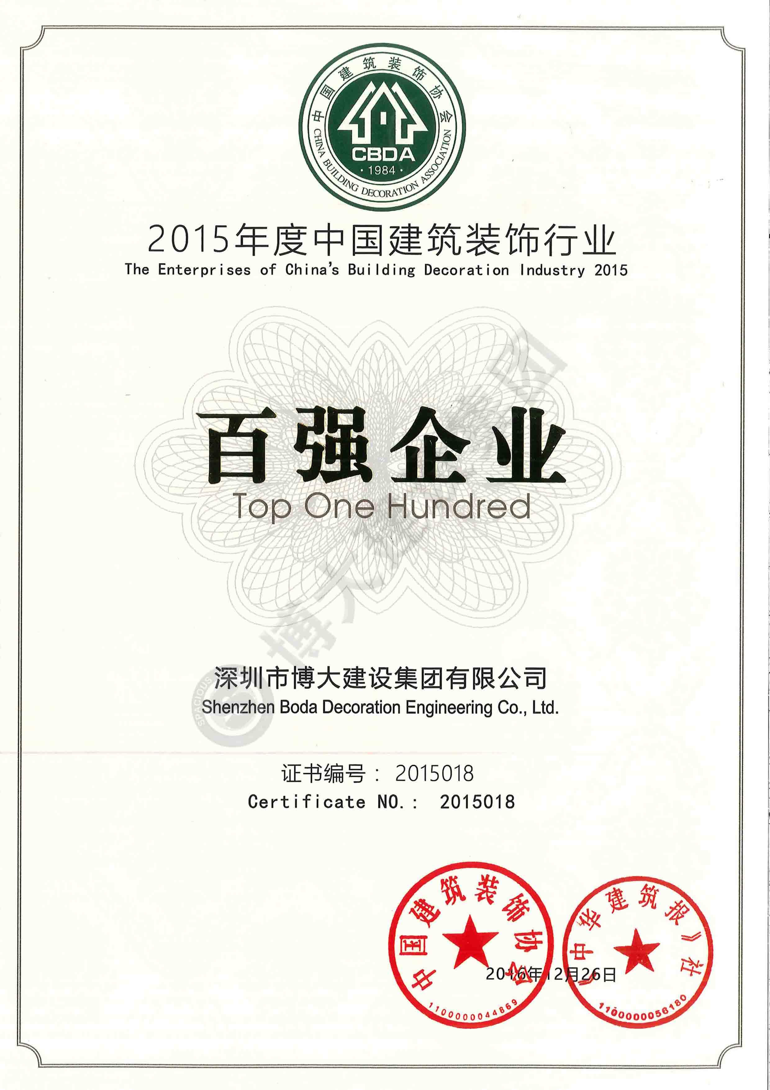 2015中國建筑裝飾行業(yè)百強企業(yè)