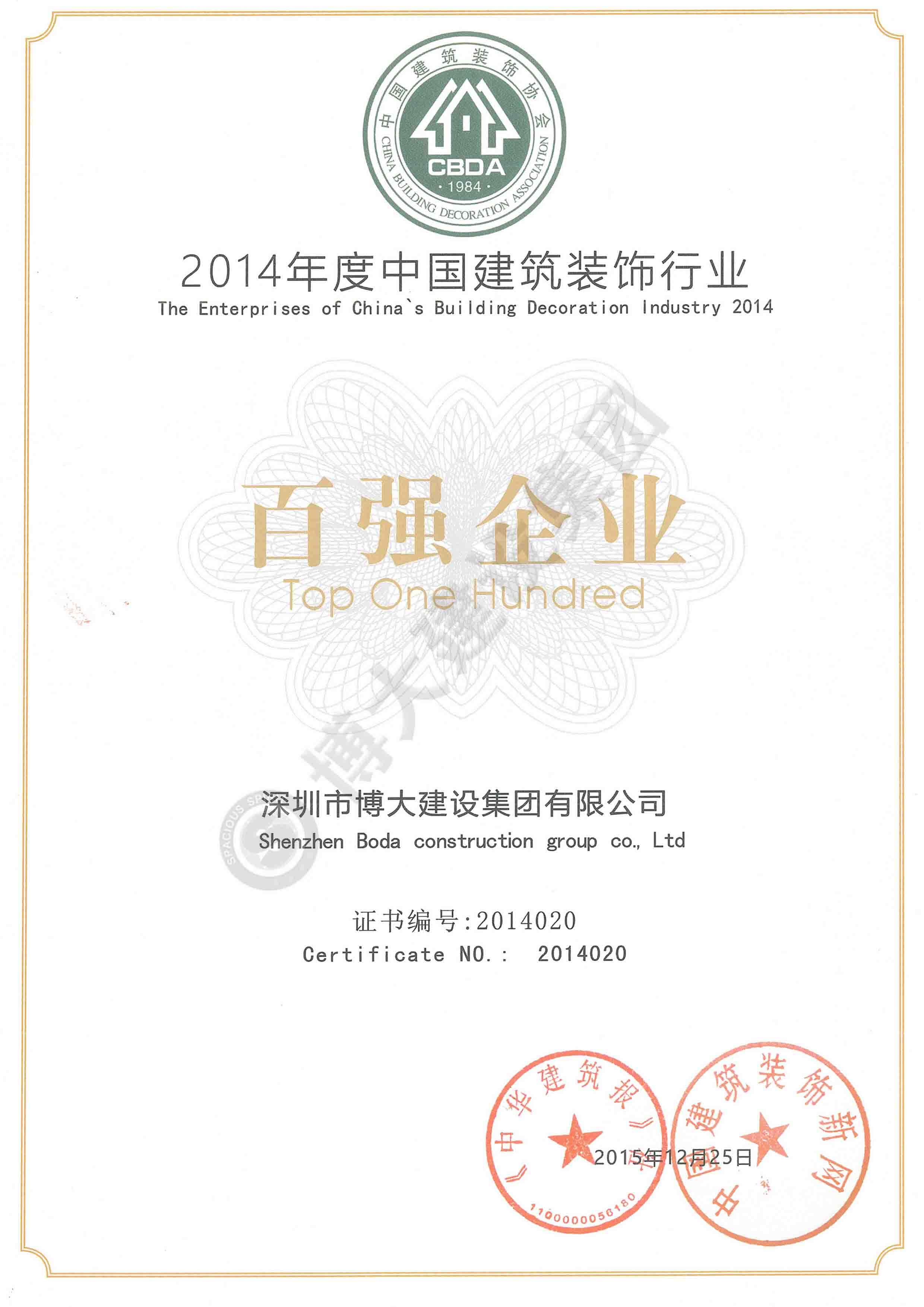 2014年度中國建筑裝飾百強企業(yè)