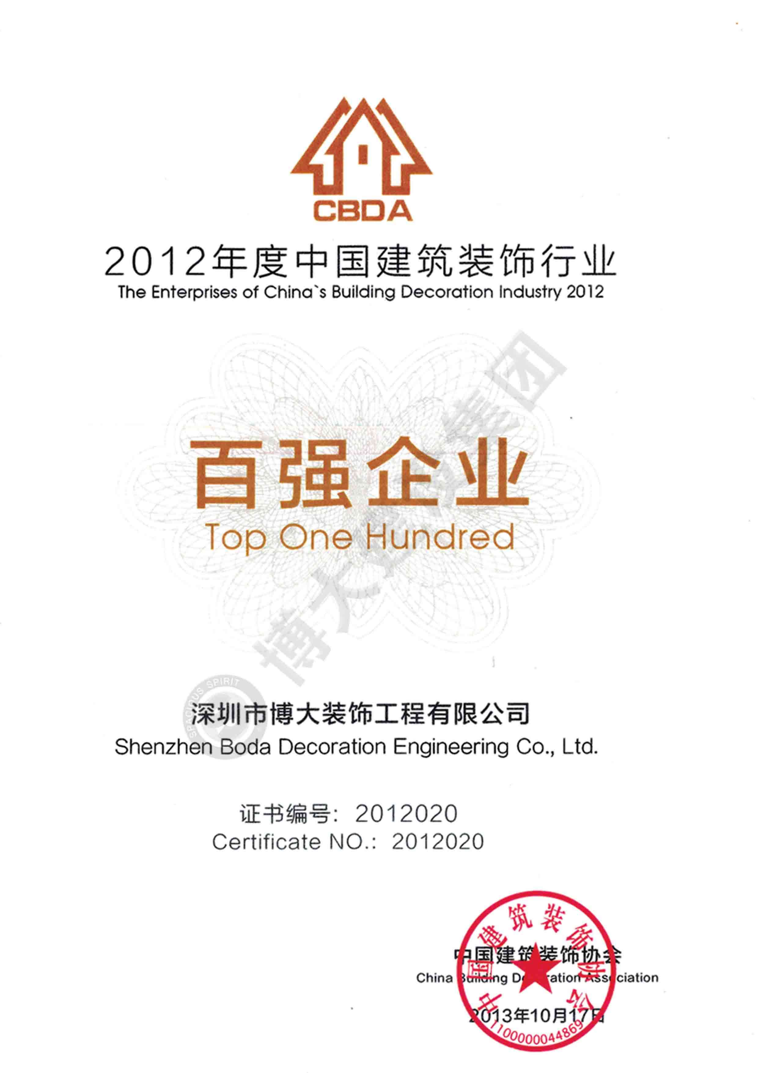 2012中國建筑裝飾行業(yè)百強企業(yè)