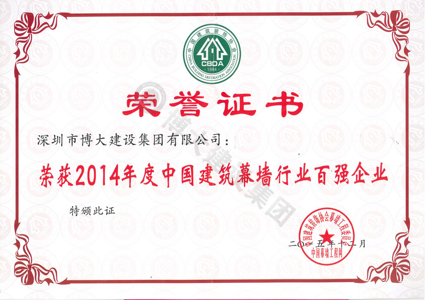 2014年度中國建筑幕墻行業(yè)百強企業(yè)