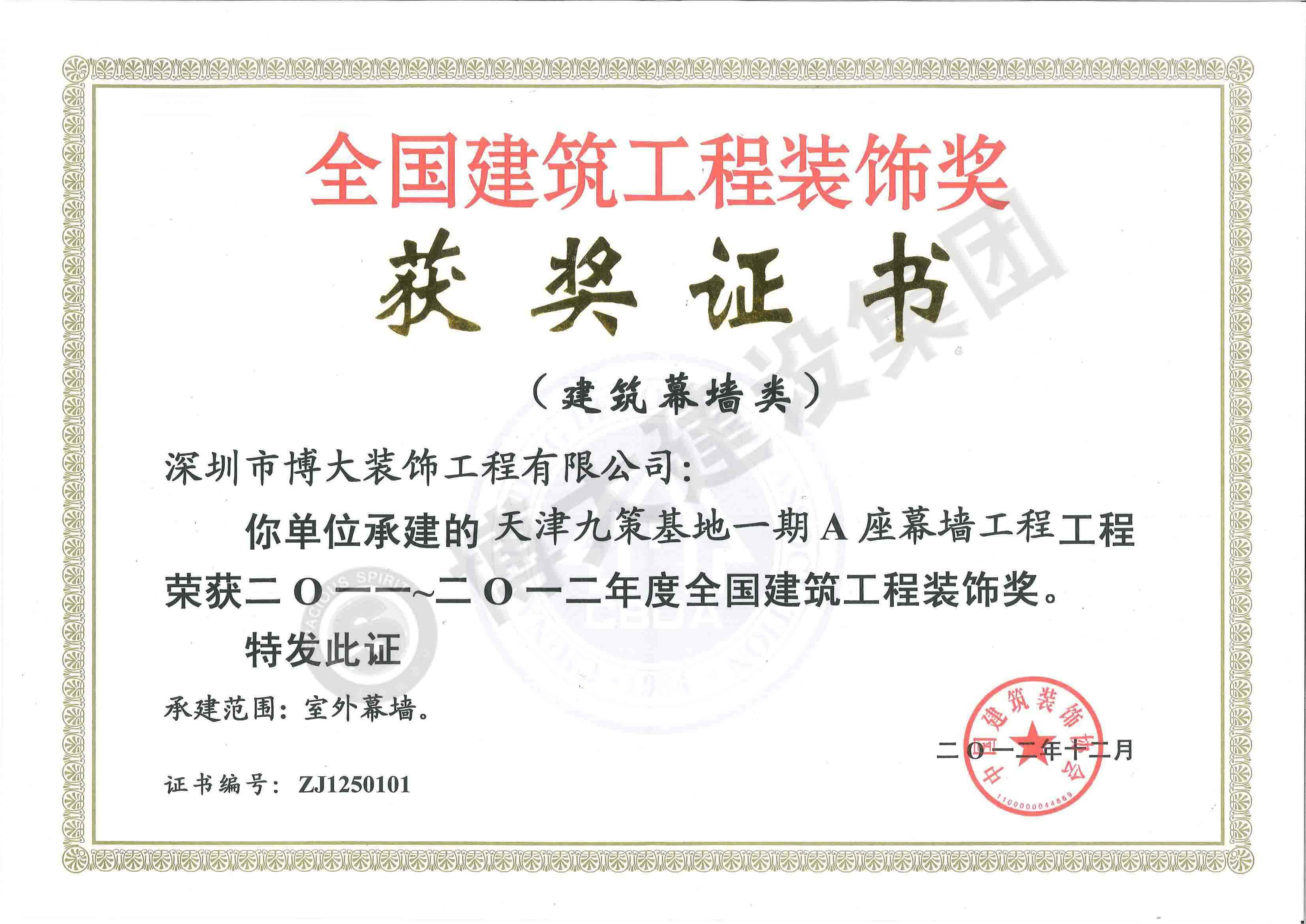 中國(guó)建筑工程裝飾獎(jiǎng)(天津九策-幕墻)