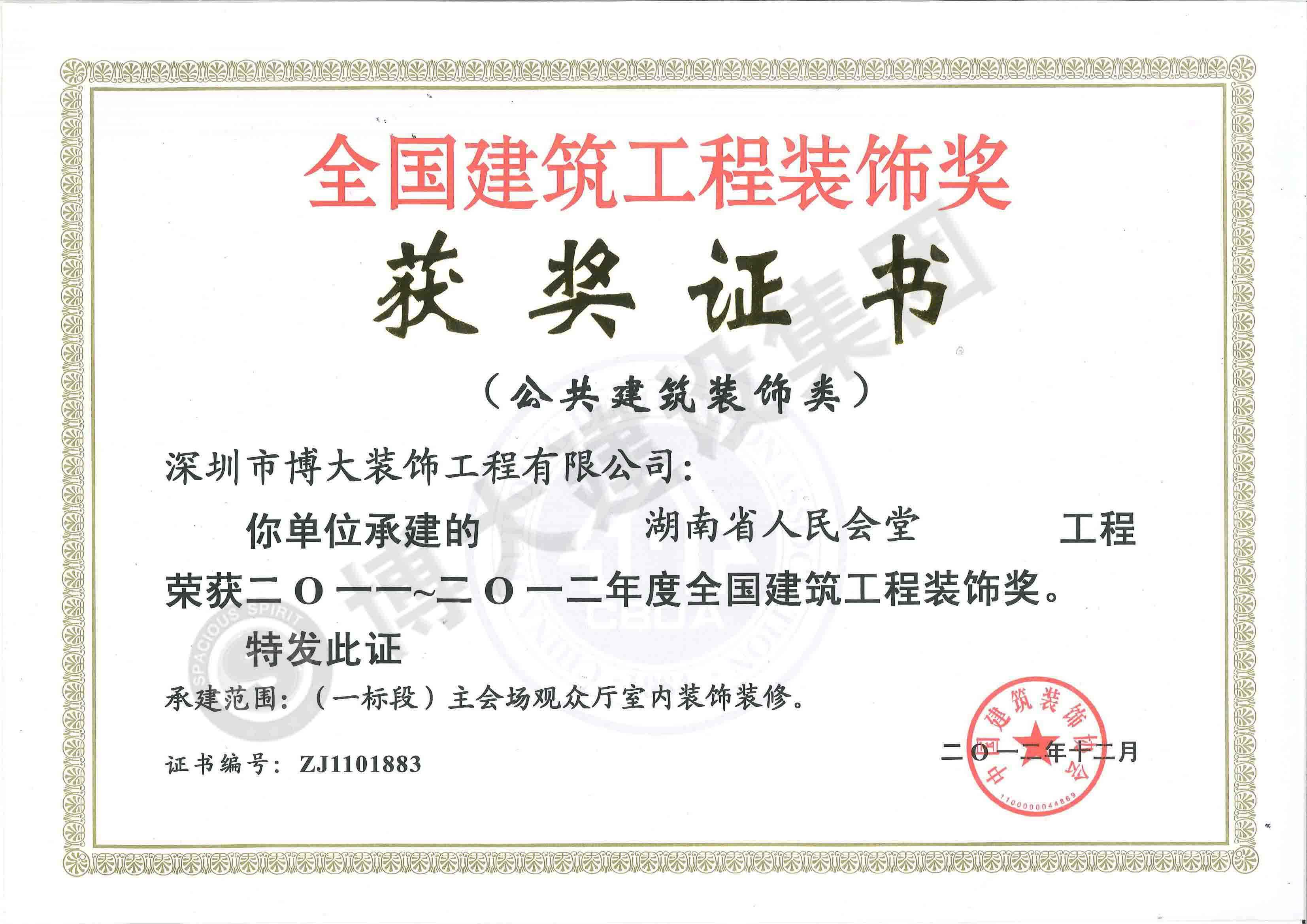 中國(guó)建筑工程裝飾獎(jiǎng)(湖南人民會(huì)堂-裝飾)