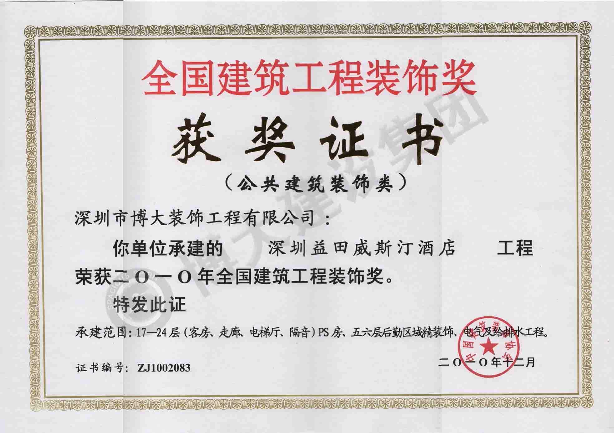 中國(guó)建筑工程裝飾獎(jiǎng)(深圳益田威斯汀酒店-裝飾)