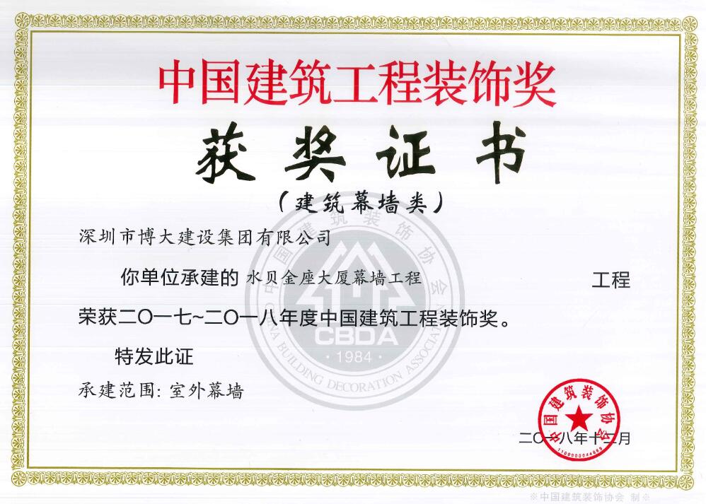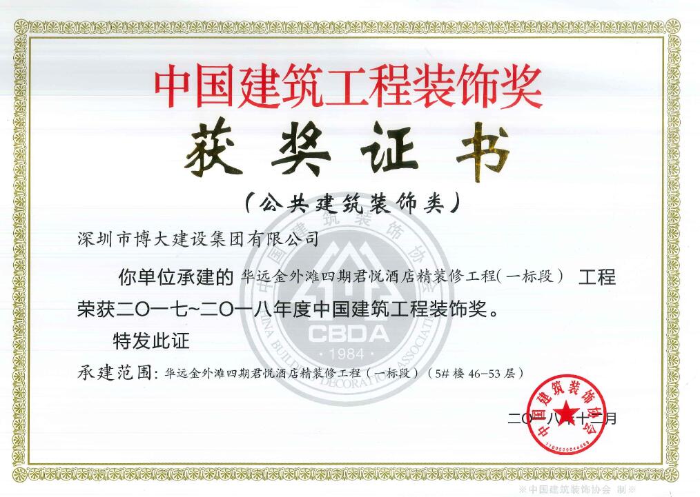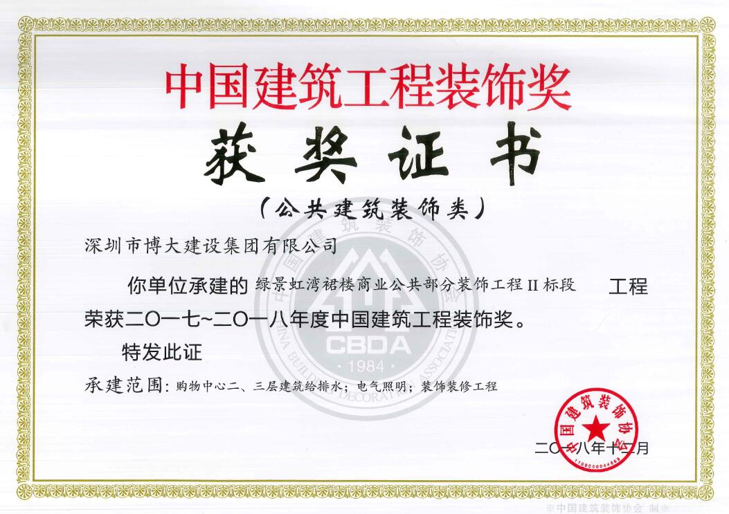 卓越品質(zhì)鑄經(jīng)典工程 博大又獲5項中國建筑工程裝飾獎