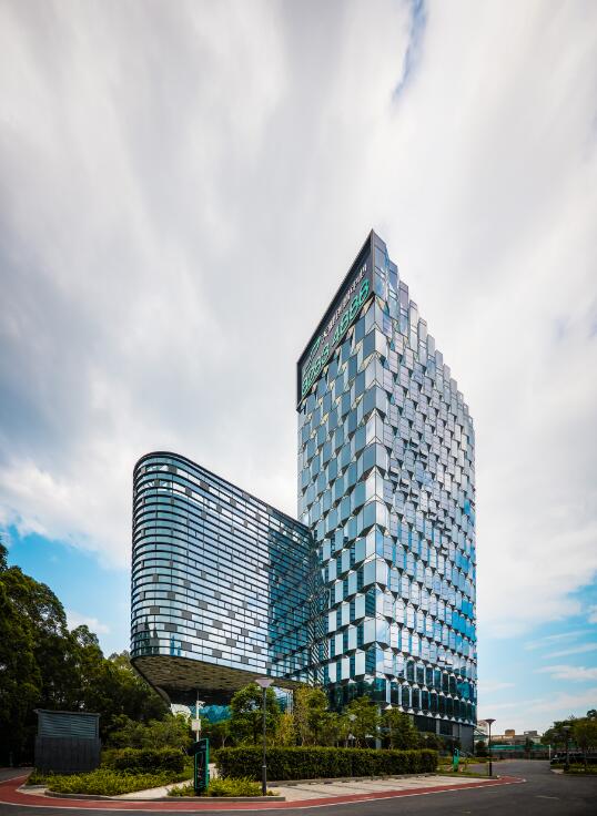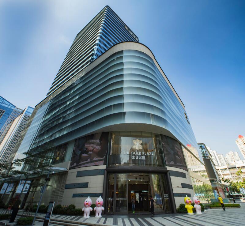 水貝金座大廈幕墻玻璃采用綜合性能較高的LOW-E中空玻璃; 3D打印彩釉,用內(nèi)部燈光營造出絲綢的皺褶效果。玻璃、陶土板等面板,95%以上是在工廠加工,大大節(jié)省了現(xiàn)場施工時間,保障了工程的順利完工。