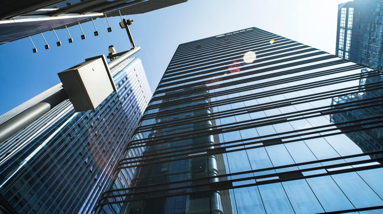幕墻安裝形式主要為構(gòu)架式,一層為全玻幕墻和鋁板幕墻,二層有玻璃雨棚,二層以上為橫明豎隱玻璃幕墻。博大使用了最新技術(shù)——彈簧銷固定橫梁系統(tǒng),安裝效率提升三分之一;節(jié)能方面——在外墻玻璃上使用了雙銀LOW-E玻璃,層間使用50mm厚保溫巖棉,采用自然通風(fēng)設(shè)計,最大限度節(jié)約能源;環(huán)保方面——綠化率高達(dá)30%以上,裙樓屋頂大面積綠化。